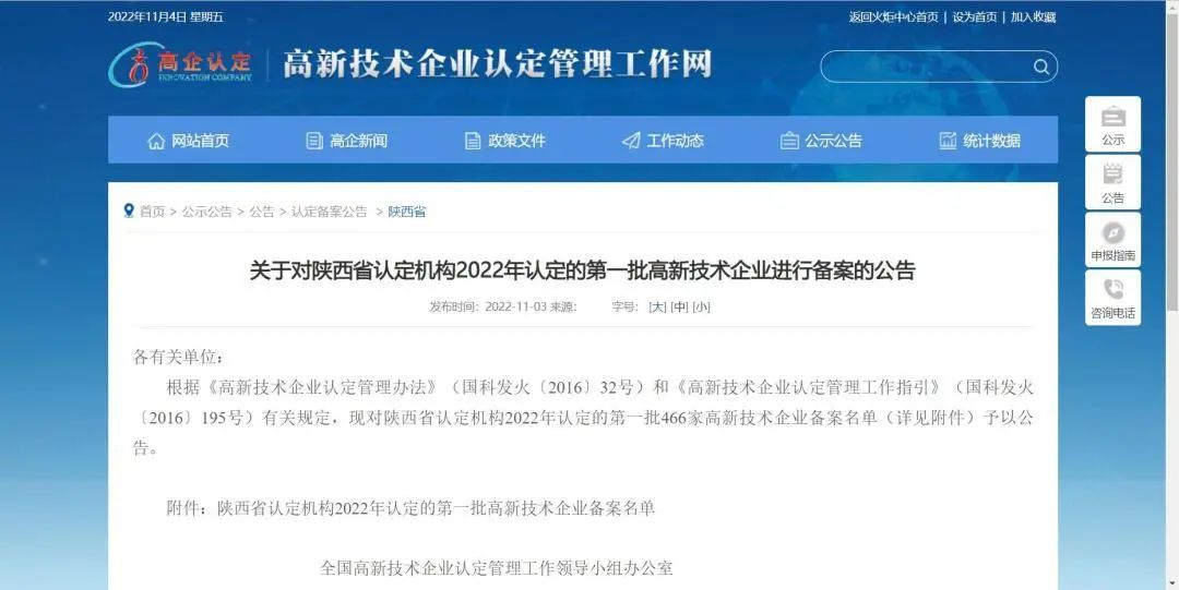 近日,從科技部火炬中心高新技術(shù)企業(yè)管理認(rèn)定工作網(wǎng)獲悉,在陜西省2022年第一批高新技術(shù)企業(yè)認(rèn)定單位中,安康陜變榮獲“國(guó)家高新技術(shù)企業(yè)”備案認(rèn)定,目前正在公示!